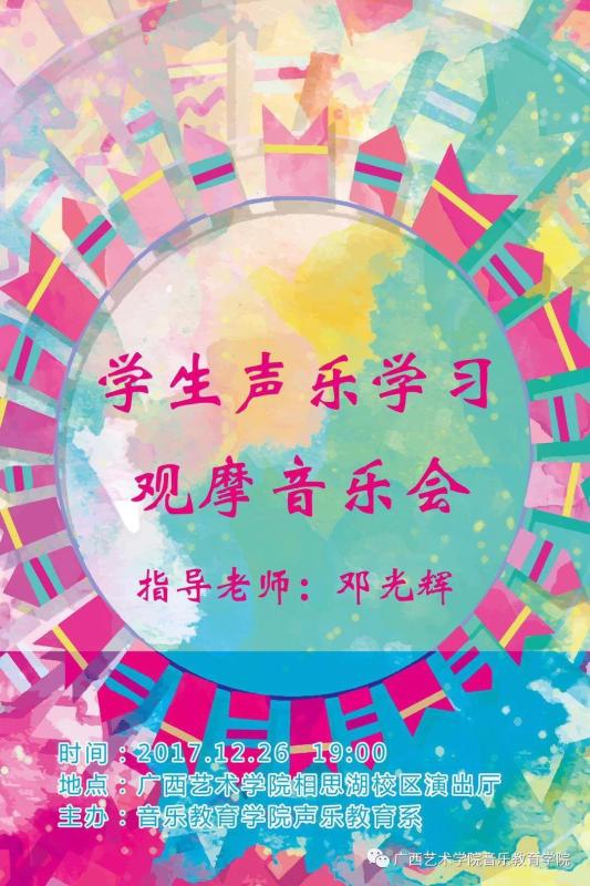 必威西汉姆联官网邓光辉老师学生声乐学习观摩音乐会即将于2017年12月26日19:00在广西艺术学院相思湖校区演出厅精彩上演,欢迎广大师生前往观看指导!