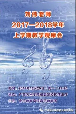 必威西汉姆联官网刘伟老师声乐教学观摩会即将于2017年12月26日19:30在广西艺术学院相思湖校区演出厅精彩上演,欢迎广大师生莅临现场观看欣赏!