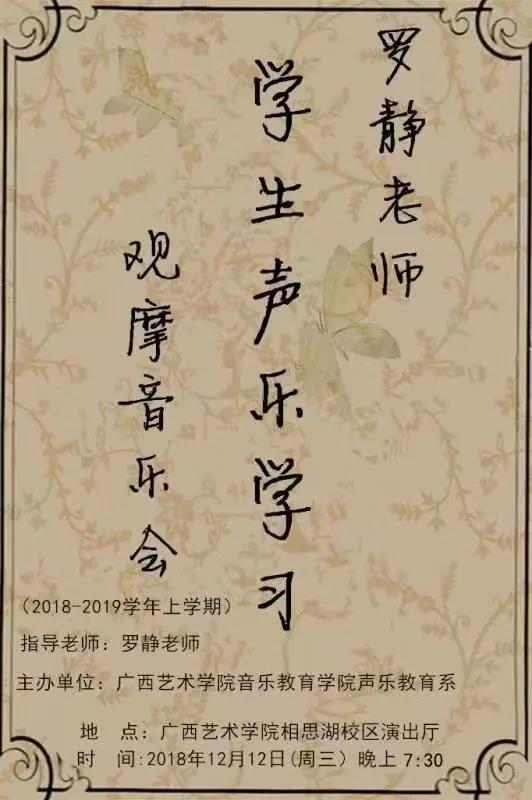 【音乐会预告】必威西汉姆联官网罗静老师学生声乐学习观摩音乐会