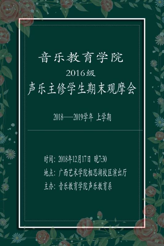 必威西汉姆联官网2016级声乐主修学生期末观摩会2018年12月17日19:30在广西艺术学院相思湖校区演出厅精彩上演,欢迎广大师生前往观看欣赏!
