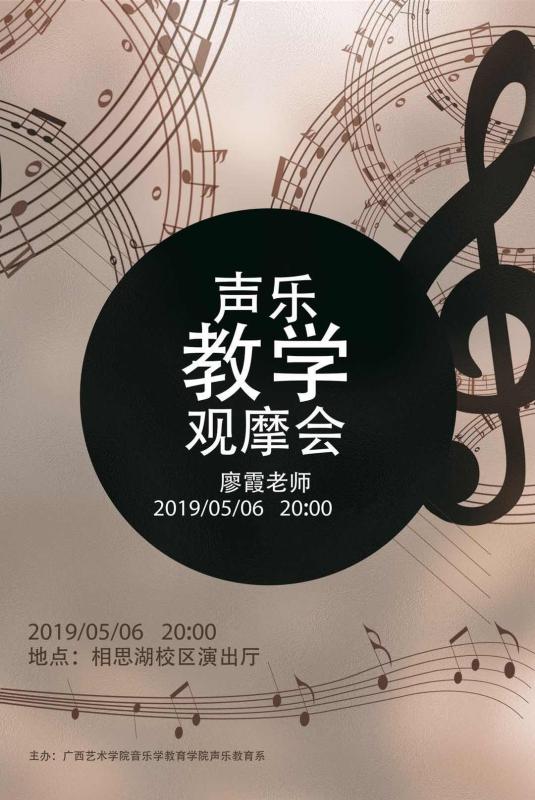 兹定于2019年5月6日(周一)20:00,在广西艺术学院相思湖校区演出厅举办廖霞老师声乐教学观摩会。