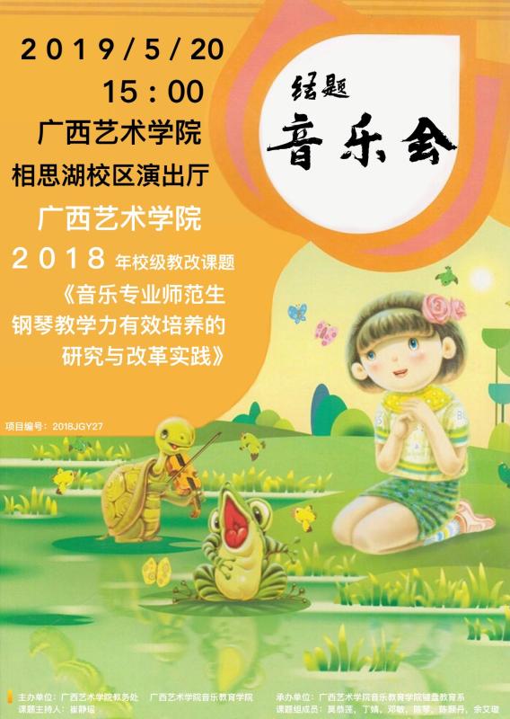 【音乐会预告】广西艺术学院2018年校级教改课题《音乐专业师范生钢琴教学力有效培养的研究与改革实践》结题音乐会