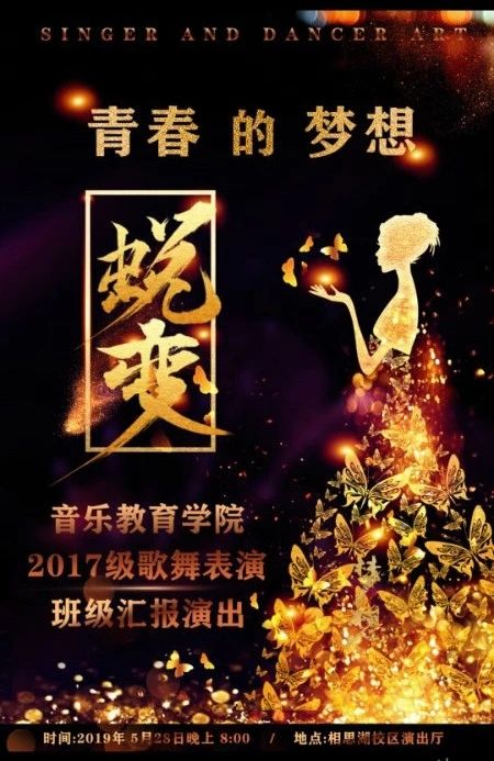 必威西汉姆联官网2017级歌舞表演班“青春的梦想——蜕变”主题汇报演出将于5月28日(星期二)20:00在广西艺术学院相思湖校区演出厅精彩上演,欢迎师生光临指导!