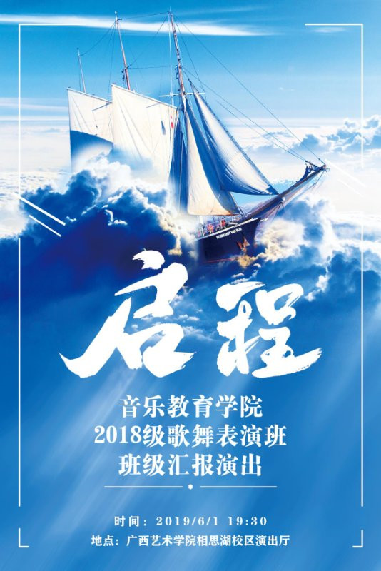 必威西汉姆联官网2018级歌舞表演班‘启程"主题汇报演出将于6月1日(星期天)19:30在广西艺术学院相思湖演出厅精彩上演,欢迎师生光临指导!