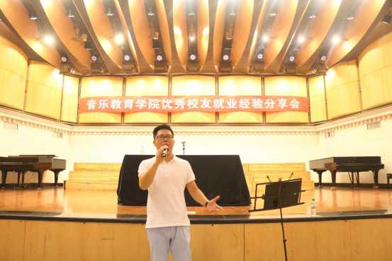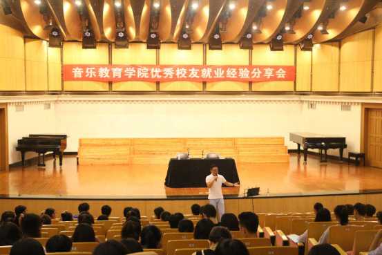 接着,举行了优秀校友韦盛“我在路上”就业经验分享会。韦盛老师是广西青年男中音歌唱家、广西音乐家协会会员、中国民族艺术协和声乐学会常务理事、广西艺术学校青年声乐教师。分享会上,韦盛老师结合其丰富的个人经历和生动的案例为在场所有毕业生提出了以下几点建议:第一,要培养自己的表达能力与沟通能力;第二,要会学习,边学习边思考,在不断总结经验的过程中成长;第三,学会站在别人的角度思考问题,全心全意、积极的投入工作;第四,诚信做人,善良做人,谦逊做人,学会让更多的人记住你等等。